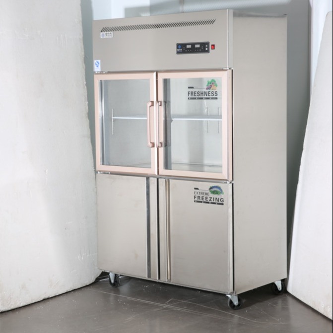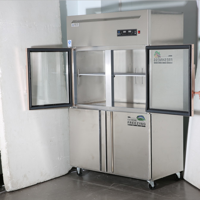 Емкость верхней двойной стеклянной двери и более низкого двойного замораживателя нержавеющей стали двери двери 4 нержавеющей стали коммерчески большая